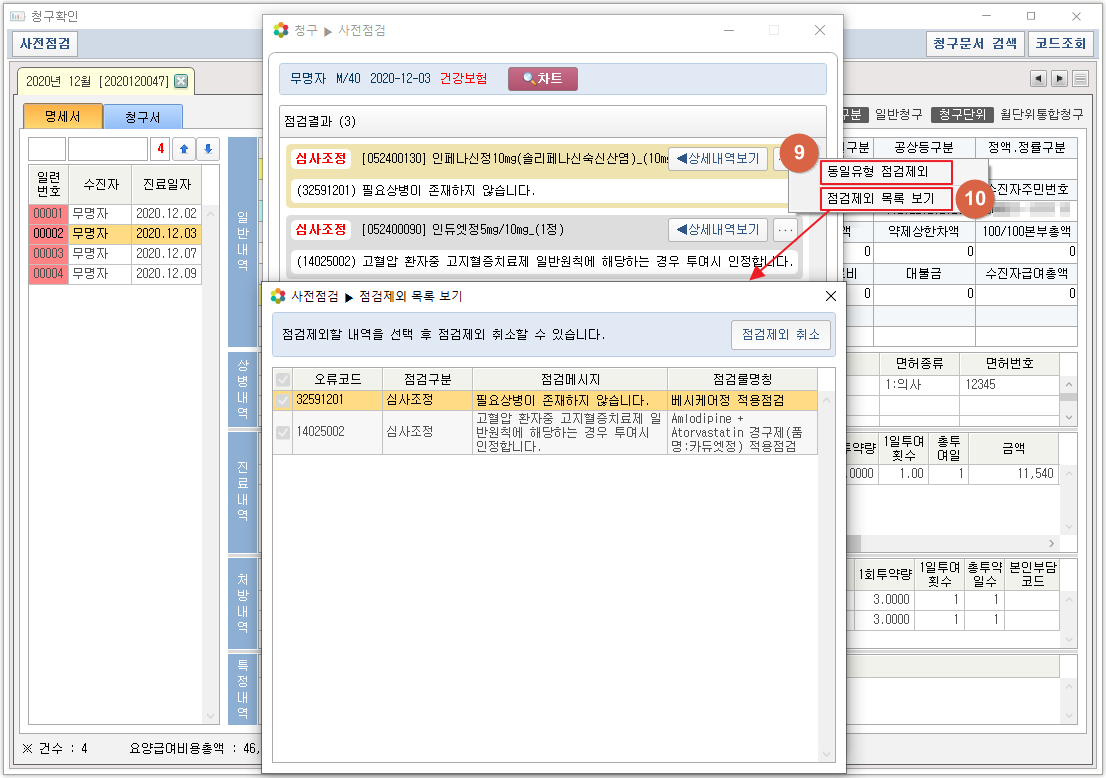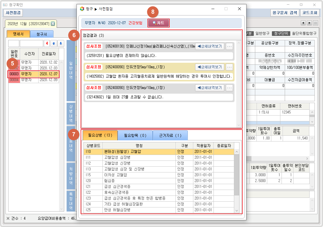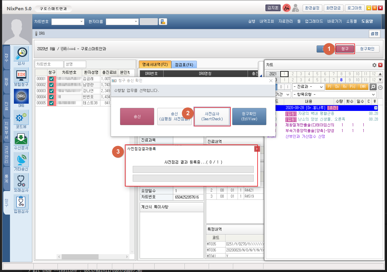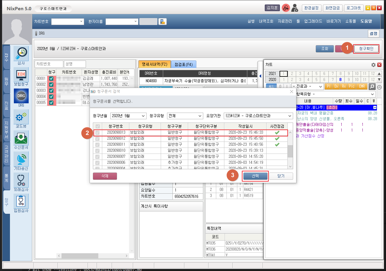 ② SmartCheck 사전점검을 진행한 청구내역을 선택합니다.