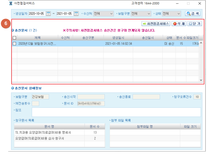 ⑥ 생성된 문서를 확인 후 사전점검서비스 송신합니다.