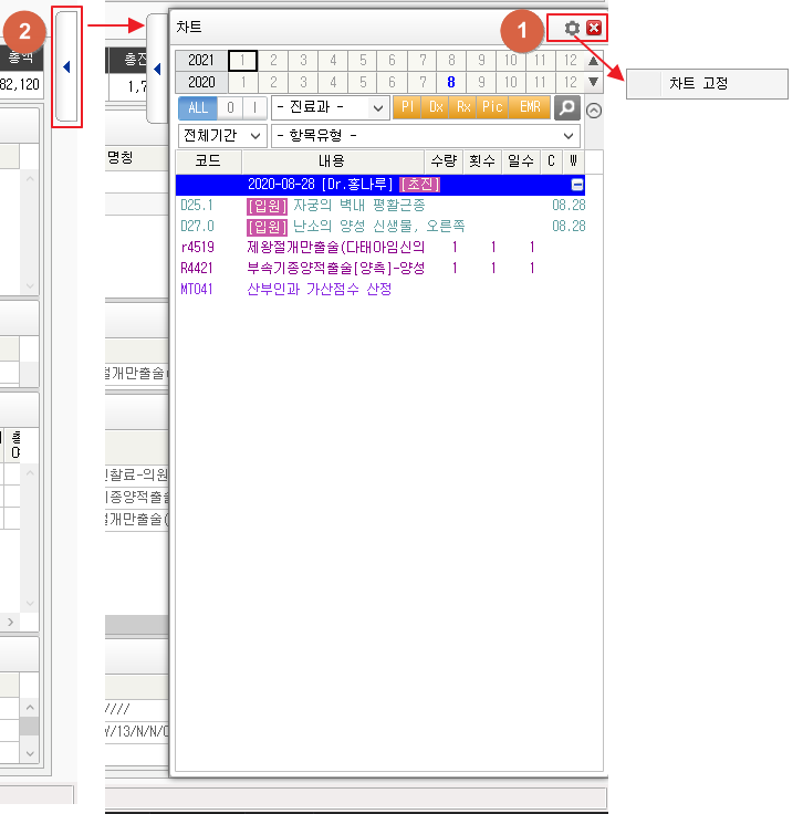 ] 버튼 클릭 시 차트를 접을 수 있습니다. ② 클릭 시 차트를 펼침/접힘 할 수있습니다.