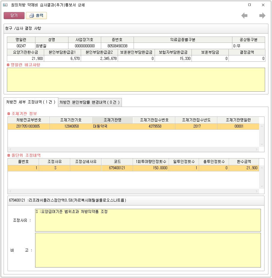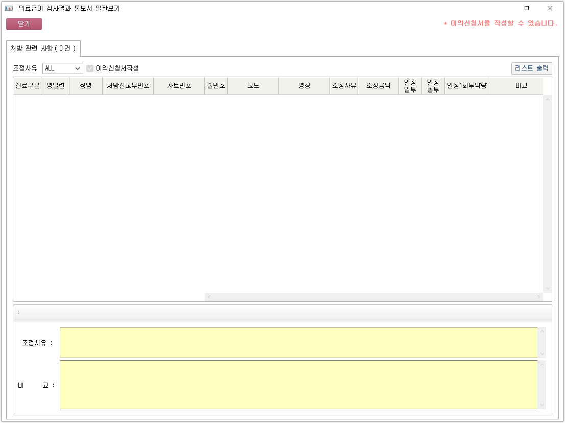 ① 선택된 수신문서를 화면에 표시합니다. ② [일괄보기] 버튼 클릭 시 일괄보기 창이 팝업됩니다. 리스트를 출력하거나 이의신청서를 작성할 수 있습니다. [Total] 버튼 클릭 시 ③에서 선택된 항목의 Total 창이 팝업됩니다. ③ 선택 시 ④ 영역에 목록이 표시됩니다. 더블클릭 시 선택된 항목의 Total 창이 팝업됩니다. ④ 더블클릭 시 상세 창이 팝업됩니다. [ 1. 문서수신 ] / [