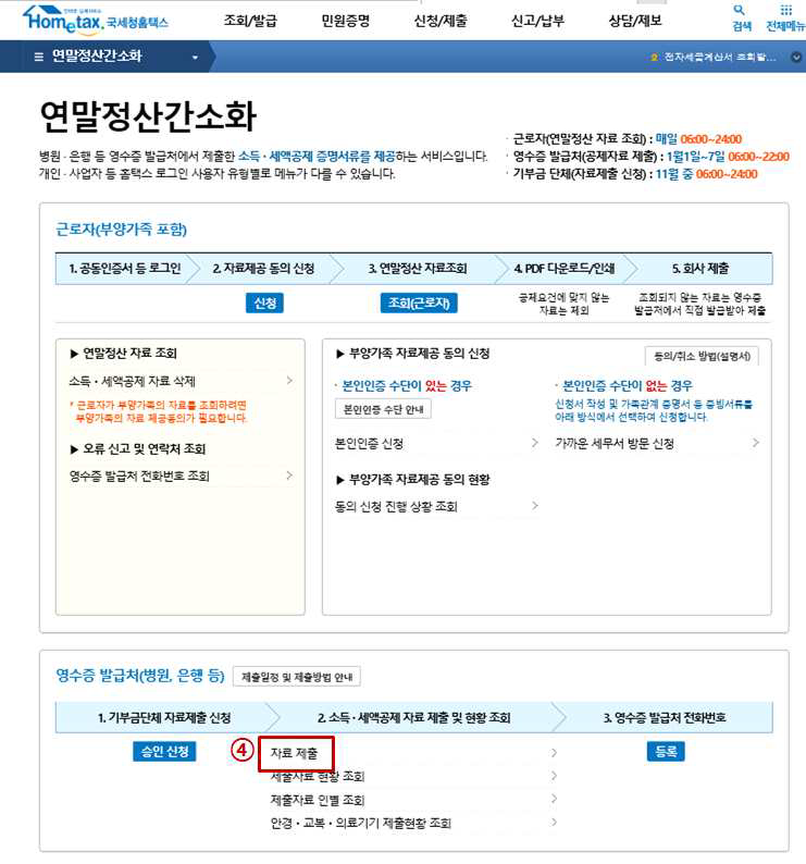- ※ 의료비 자료는 매년 3월 이후 상시 제출 가능하므로 연도 중 폐업하는 경우다음 해까지 기다리지 않아도 자료 제출 가능