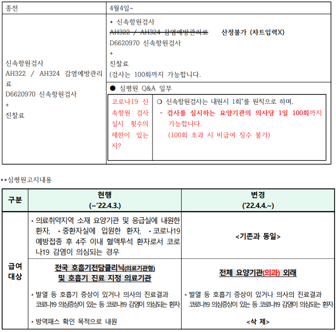 ● 코로나19 신속항원검사 관련 청구 방법 변경 안내