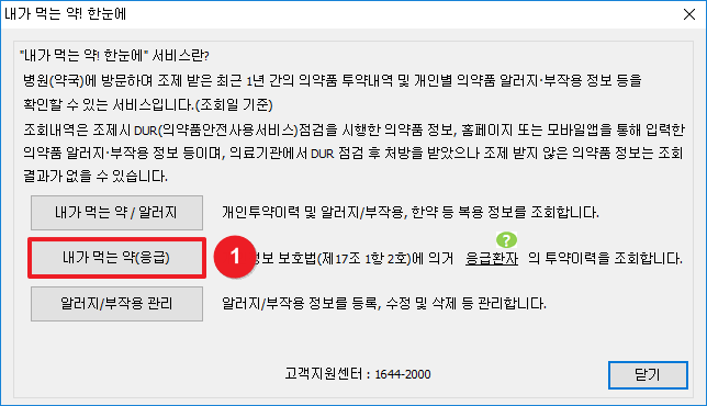 [ 내가 먹는 약(응급) 조회 화면 ]