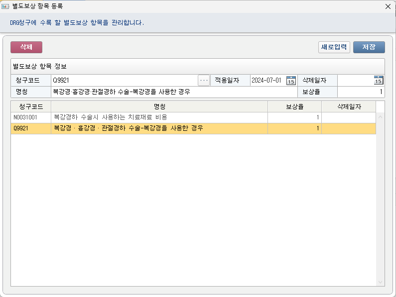 - DRG 별도 보상 항목 등록