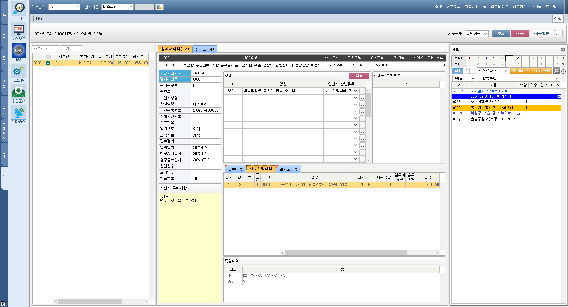 - DRG 청구 명세서 별도 산정 내역 확인
