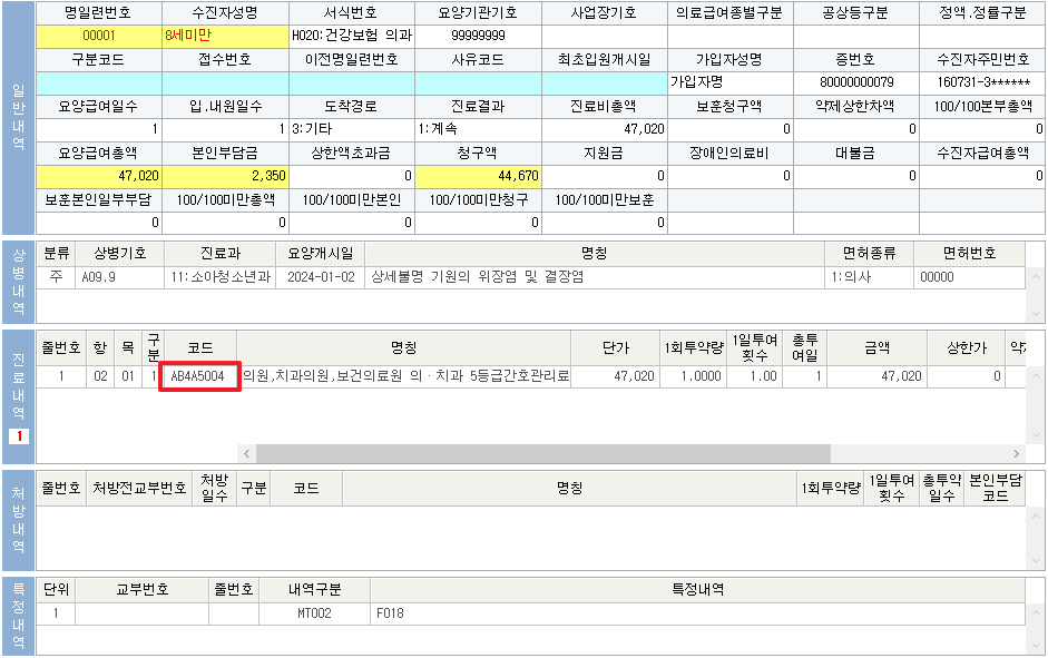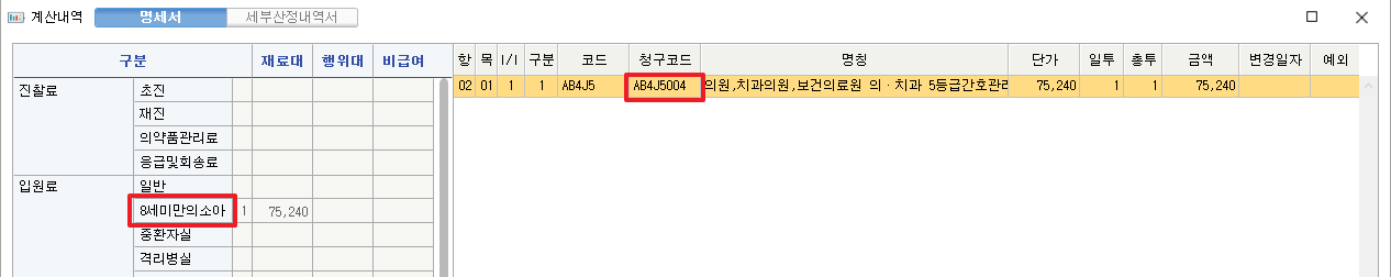 - 만 1세 이상 만 8세 미만의 소아환자 입원료 가산 확인
