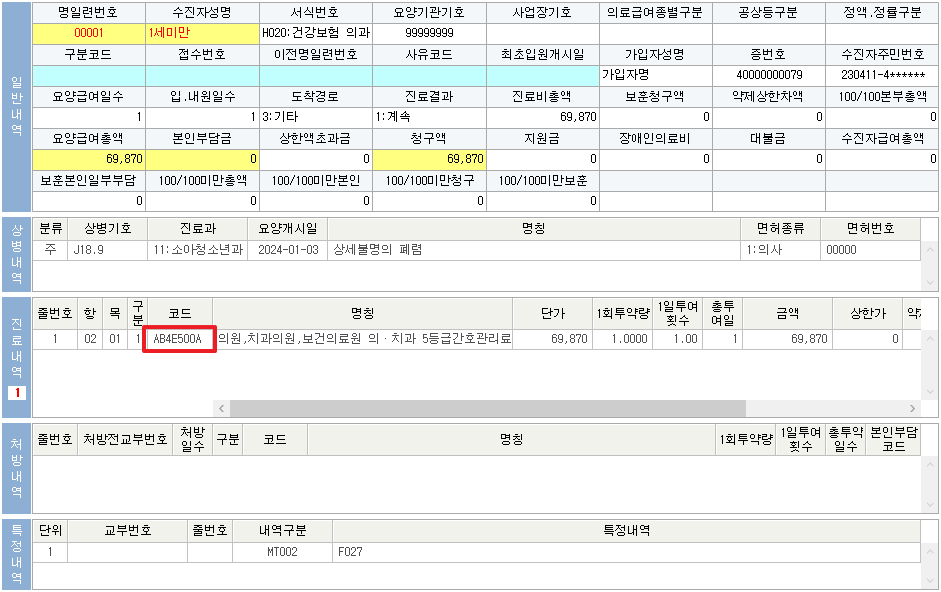 - 입원진료시 의원급 입원료 입력 시 자동 산정 됩니다.