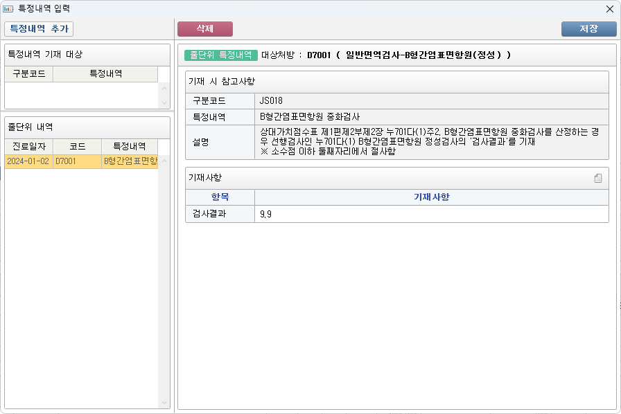 - 특정내역(모자동실 입원료, B형간염표면항원 중화검사) 신설