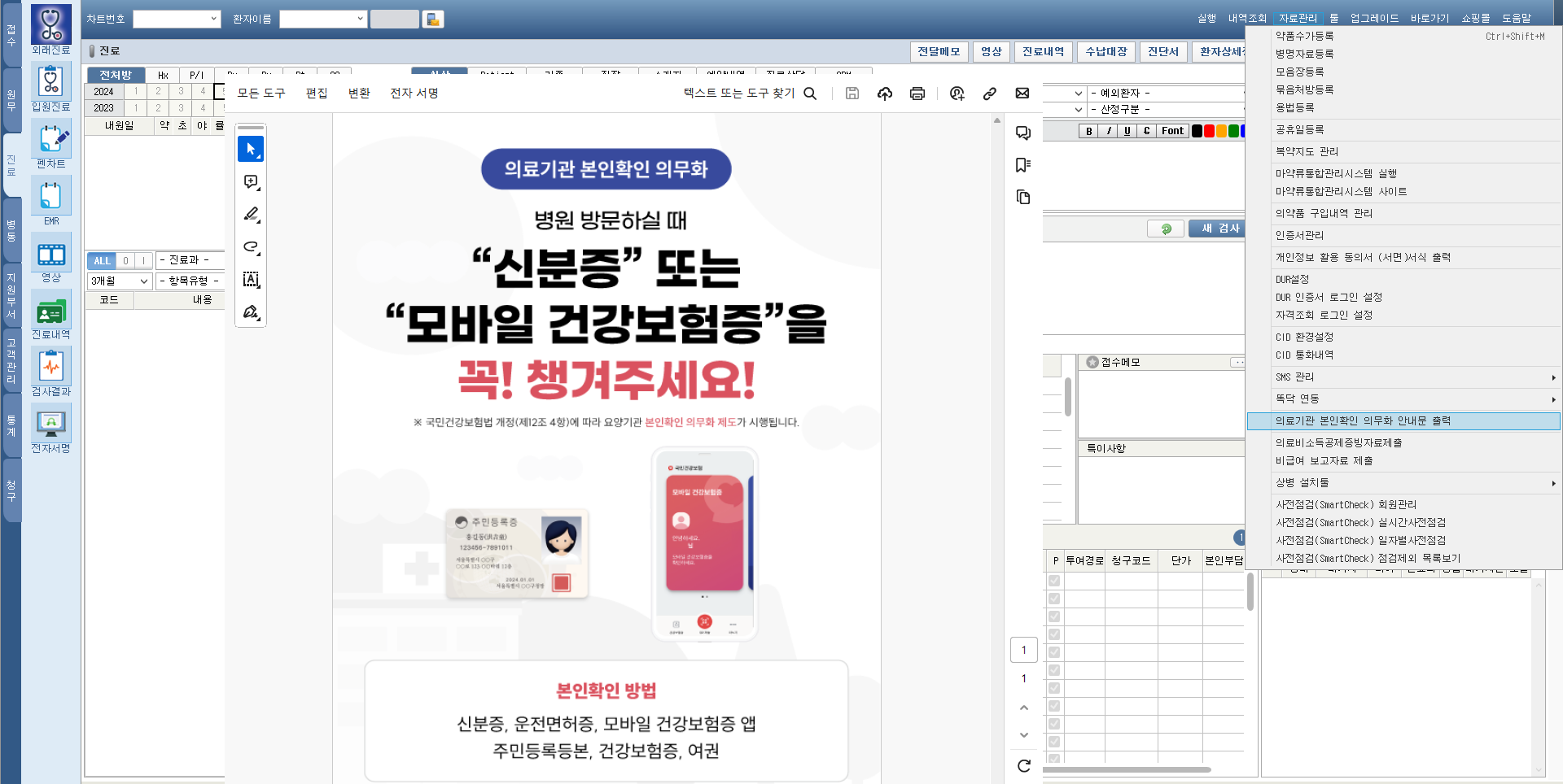 - 의료기관 본인확인 의무화 안내문 출력 자료관리 메뉴 추가