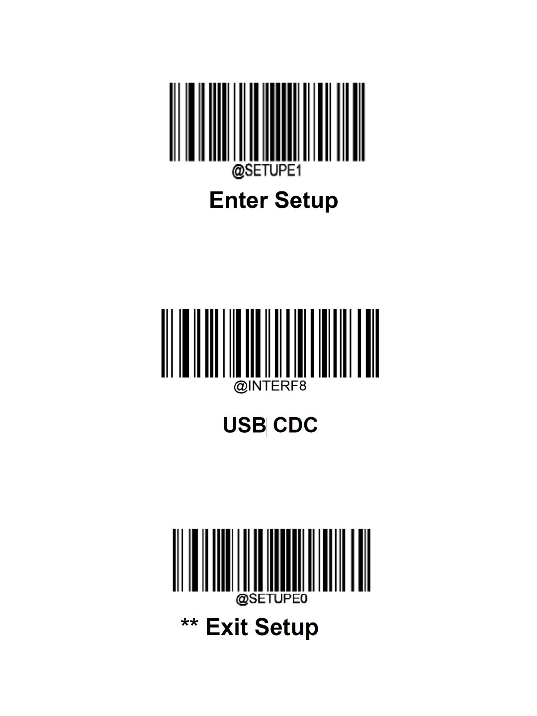 - 키오스크 리더기에 아래 바코드를 순차(위에서 아래) 스캔하여 CDC 설치