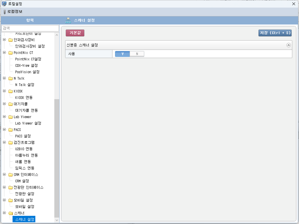 - 신분증 스캐너 장치를 사용하는 경우 스캐너 로컬 설정에서 사용 여부 설정