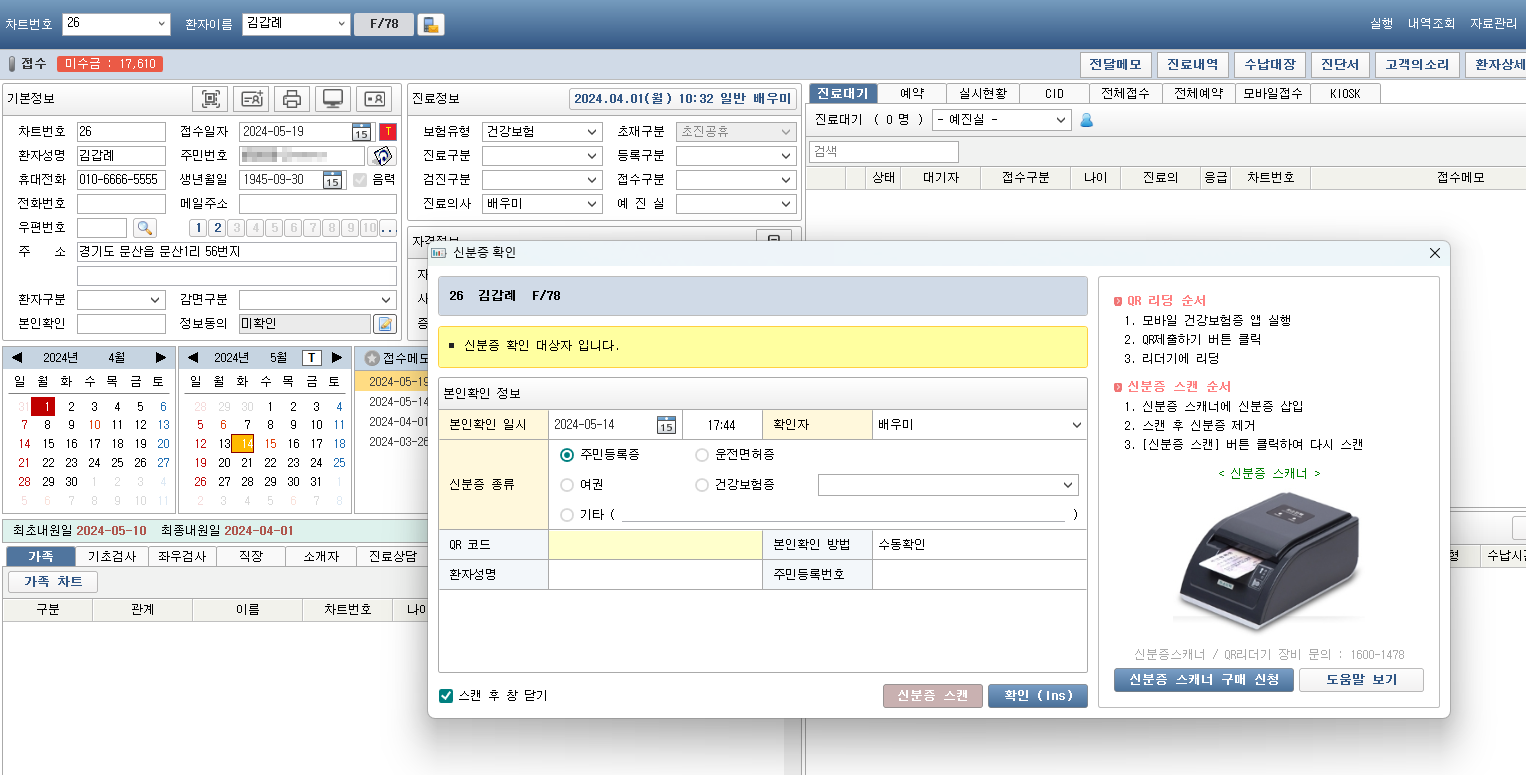 - QR 코드 또는 신분증 스캔으로 환자 불러오기
