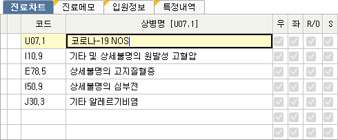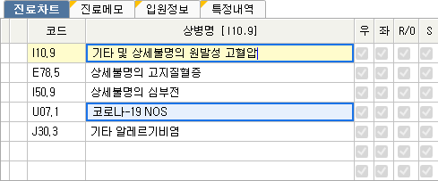 ▲ 첫 번째 줄 I10.9 주상병으로 위치 이동
