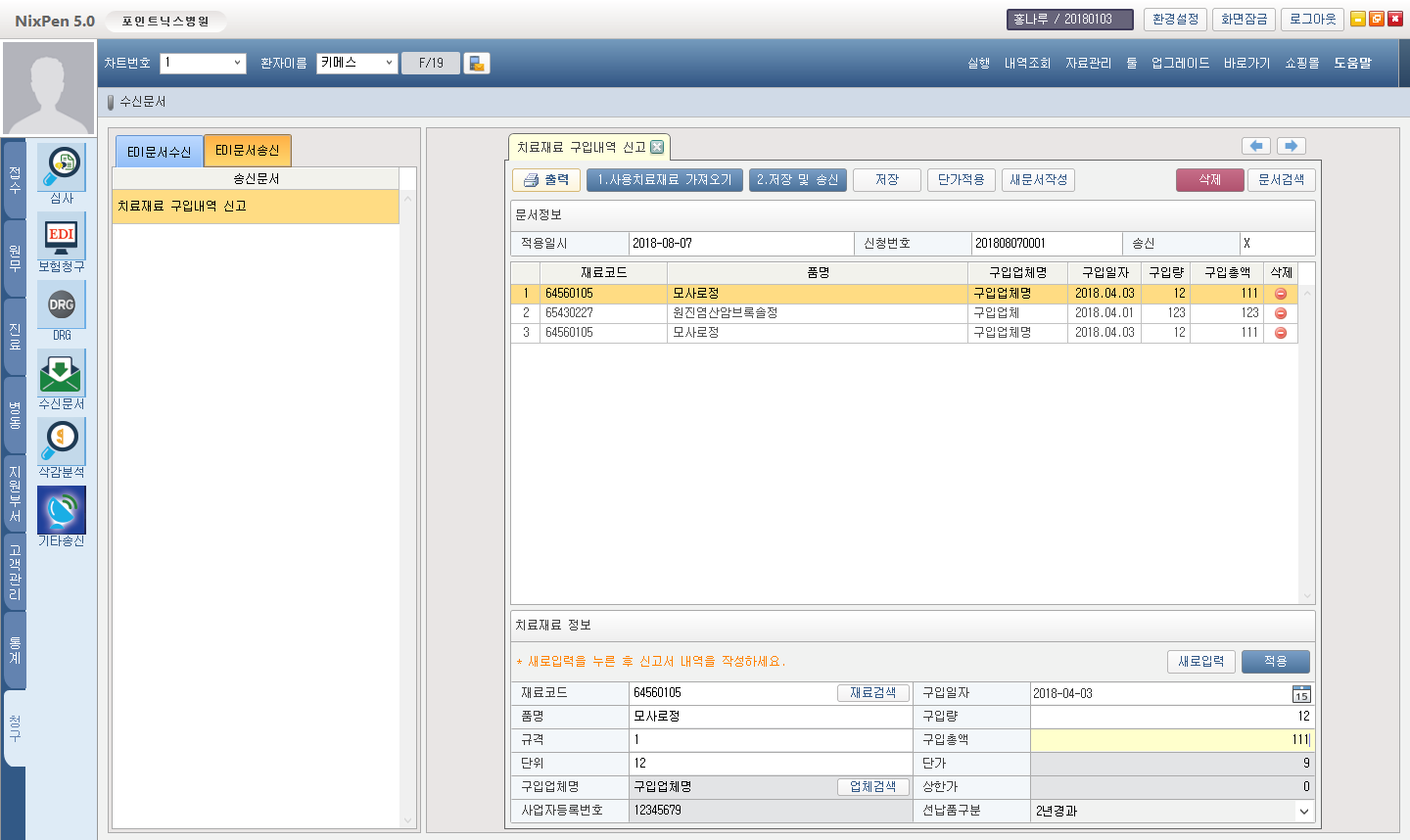 치료재료 구입내역 신고서 UI 개선