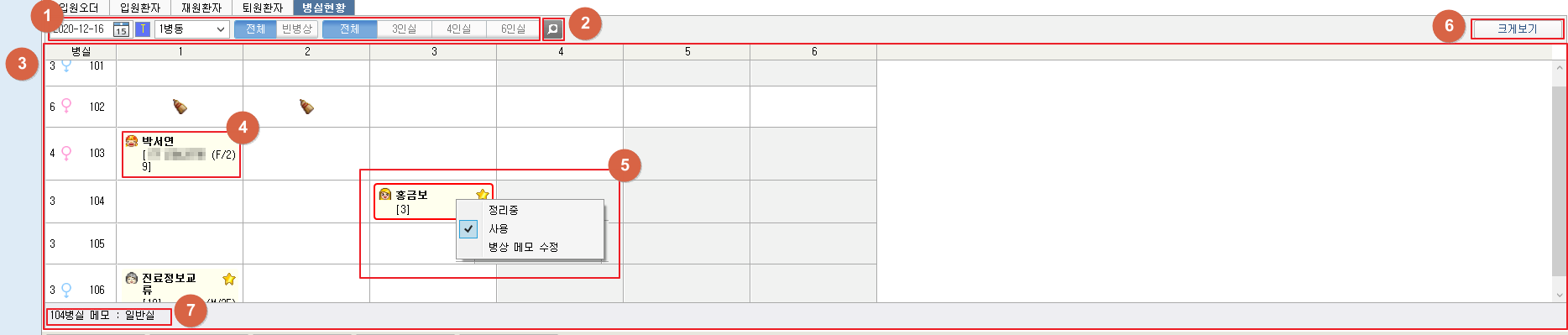 ⑥ [크게보기] 버튼을 클릭하여 병실현황을 크게 볼 수 있습니다.