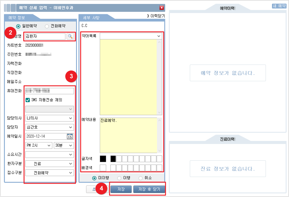 ④ [저장] 또는 [저장 후 닫기] 버튼을 클릭하여 예약을 추가합니다.