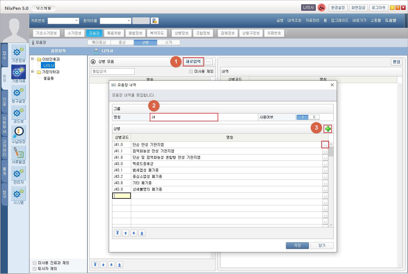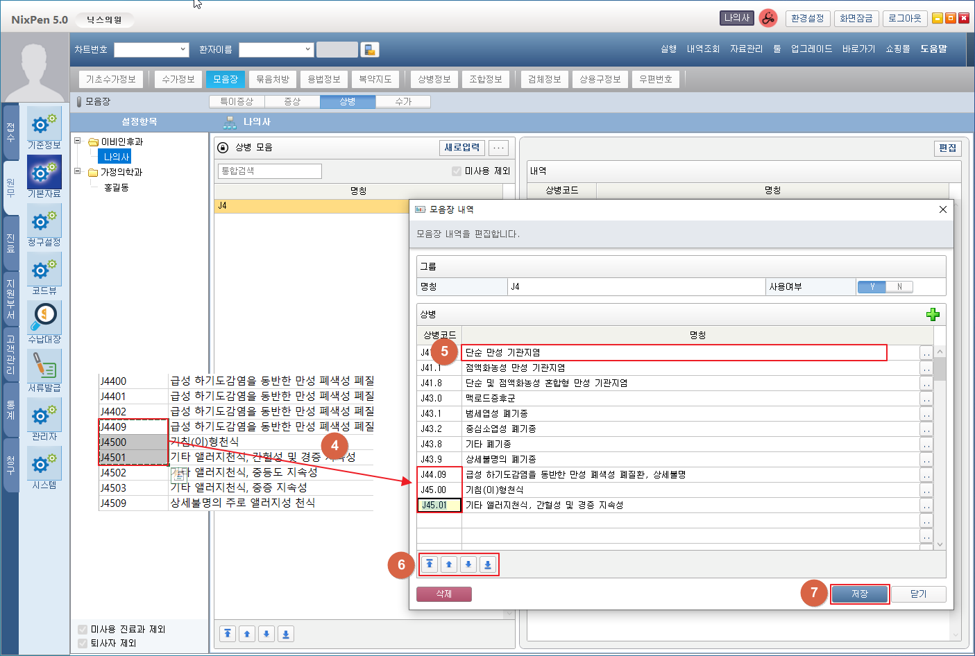 ⑦ [저장] 버튼을 클릭하여 상병그룹과 그룹에 포함된 상병내역을 추가합니다.