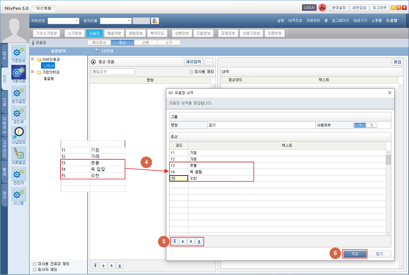 ⑤ 증상내역의 순서를 변경할 수 있습니다.