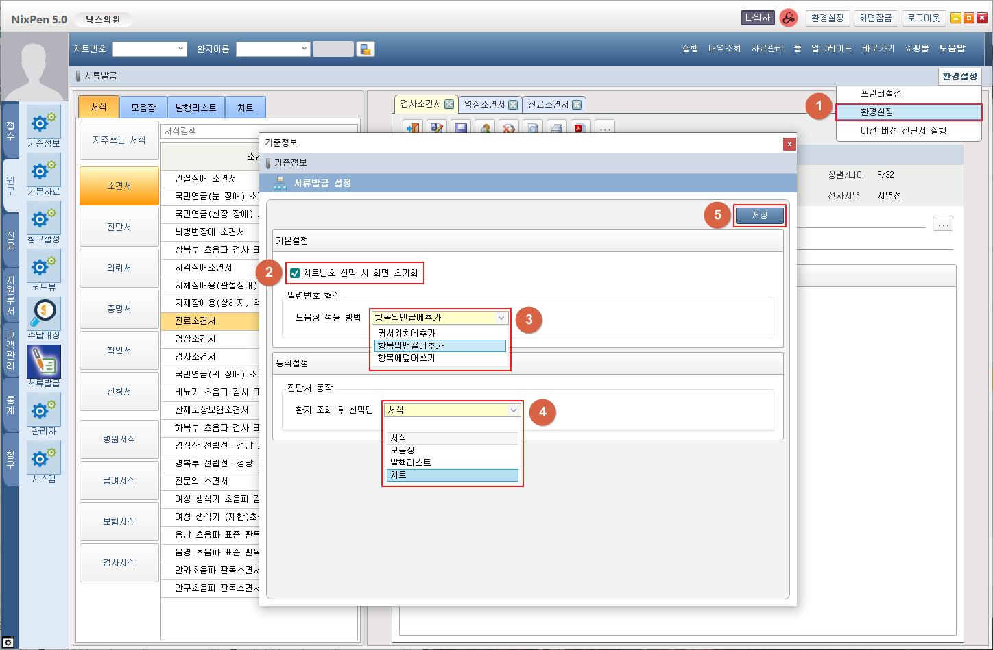 ② 진단서의 차트번호 입력상자 선택 시 진단서 내용을 초기화할지 여부를 선택합니다.