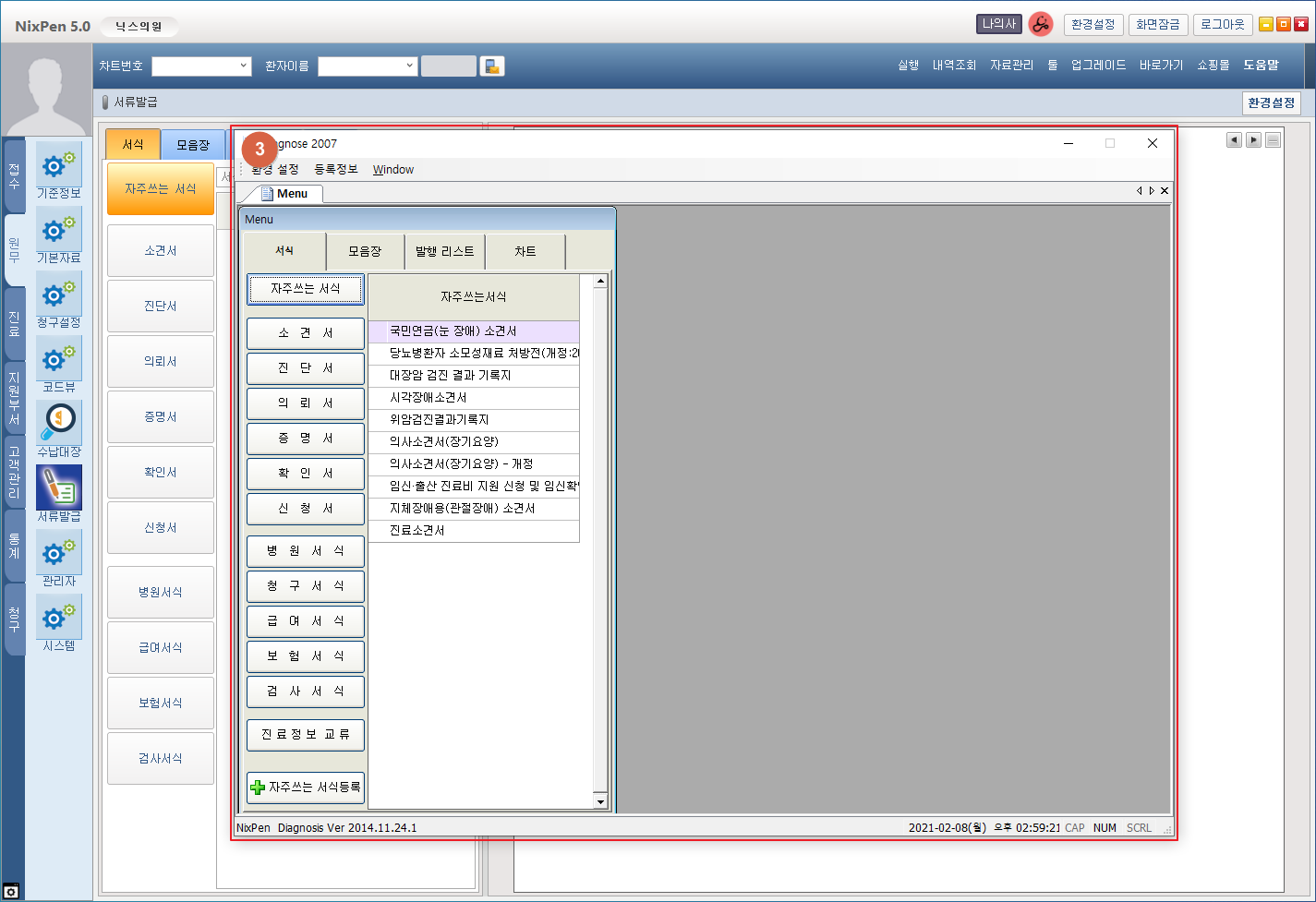 ① [이전 버전 진단서 실행] 메뉴를 선택합니다.