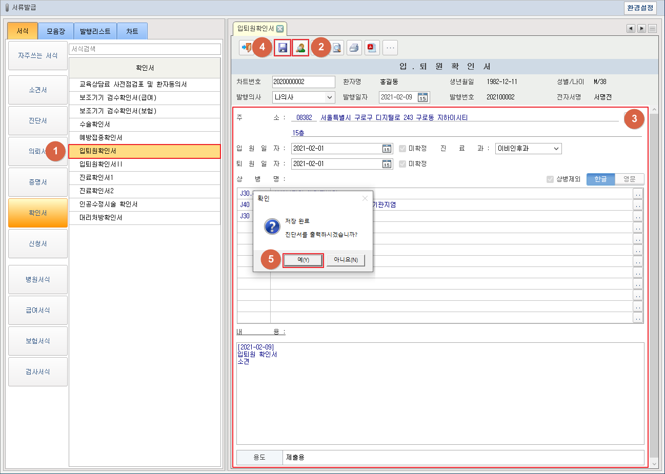 ⑤ [예] 버튼을 클릭 하여 저장된 문서를 출력합니다.