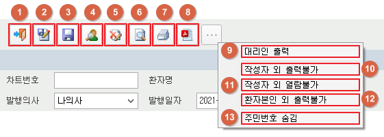 ⑫ 환자본인 외 출력불가 여부를 변경합니다.