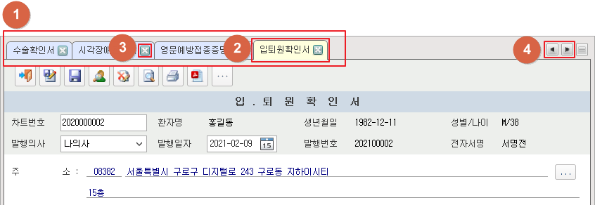 환자색인 창에서 현재 선택한 진단서의 대상 환자를 선택합니다.