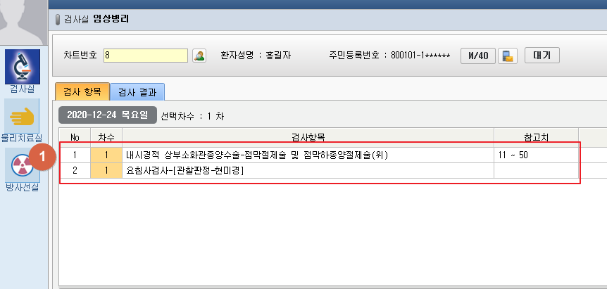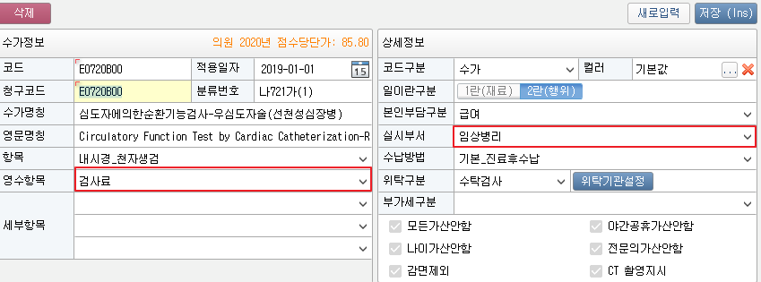 ② 실시부서 별 검사코드 목록을 확인합니다.
