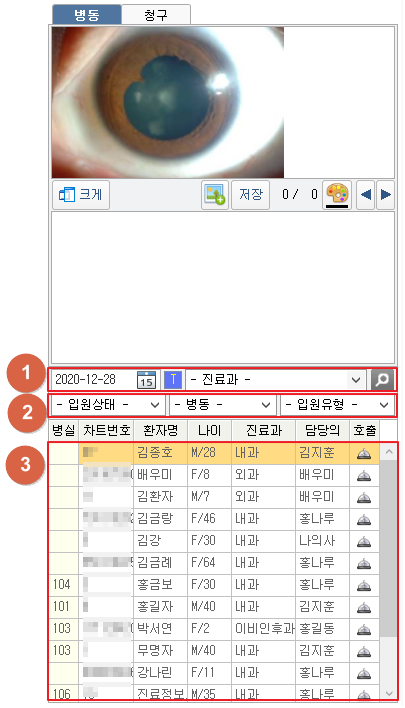 ③ 입원 목록에서 더블클릭 시 선택환자를 호출 후 불러옵니다.