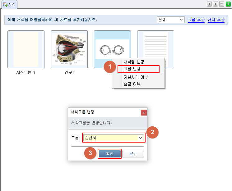 ① 서식을 추가할 서식 그룹을 선택합니다.