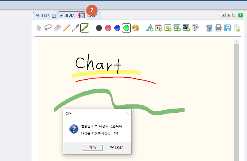 ⑤ 수정된 탭은 우측에 [*] 모양이 표시됩니다.
