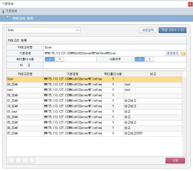 [로컬경로 설정] 메뉴 클릭 시 Scan 로컬경로 설정 화면이 창으로 팝업됩니다.