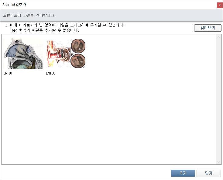 [파일추가] 버튼 클릭 시 Scan 파일추가 창이 팝업됩니다.