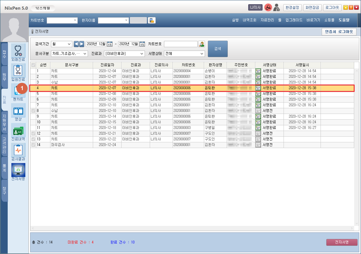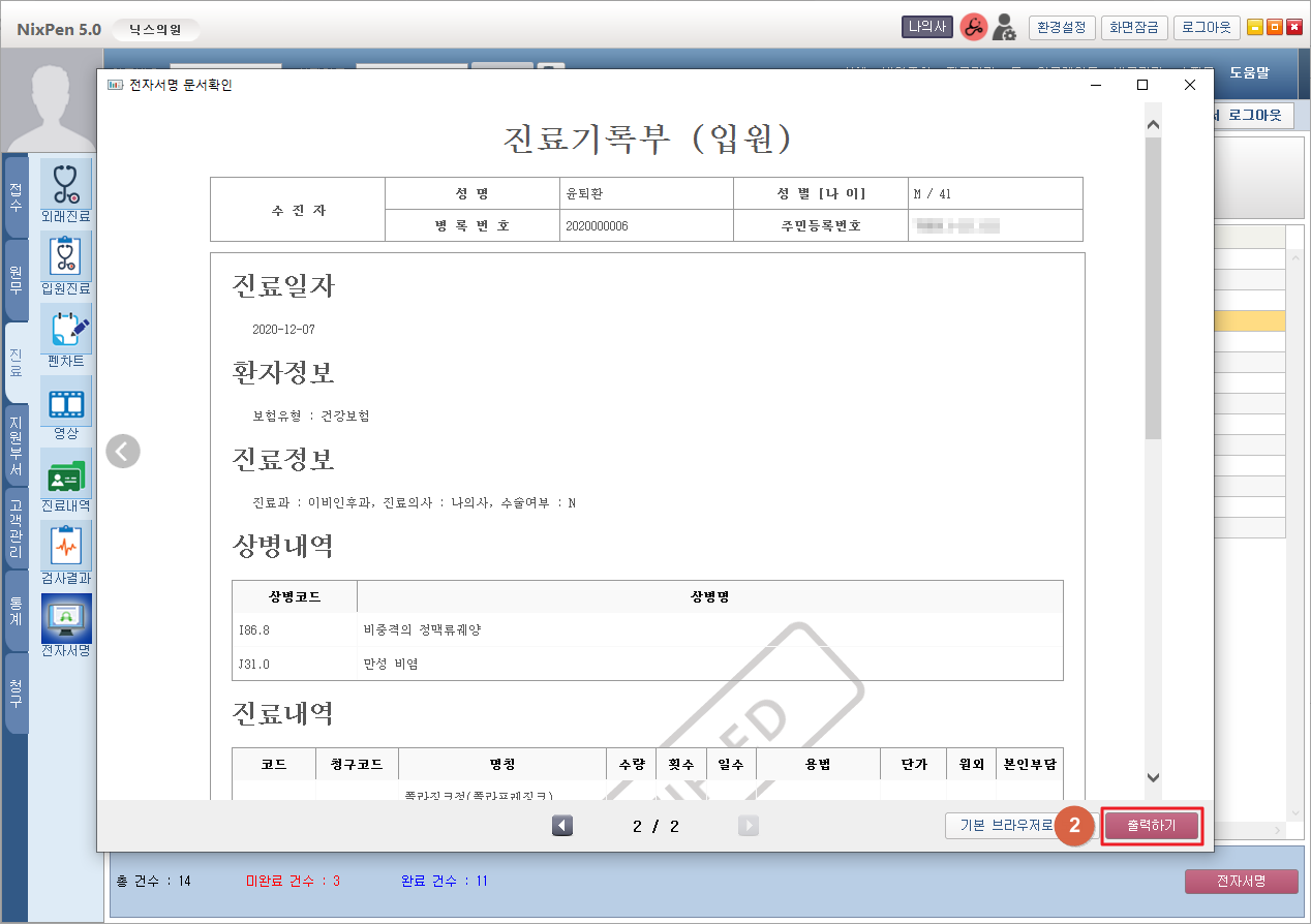 ① 출력하고자하는 문서를 더블클릭합니다. 서명완료된 문서에 한해 출력할 수 있습니다.