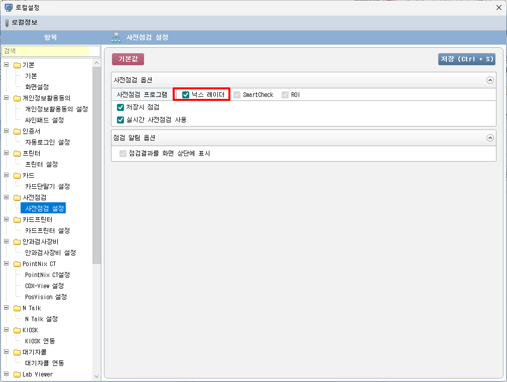 - [로컬설정] - [사전점검] - [사전점검 설정] 메뉴로 이동 합니다.