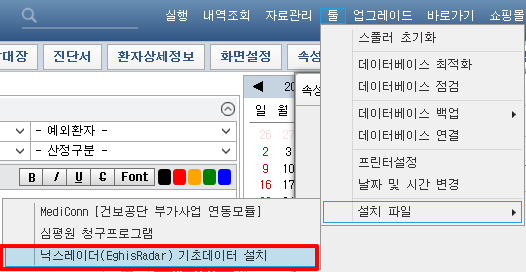 - [툴] - [설치 파일] - [닉스레이더 기초 데이터 설치] 메뉴를 선택합니다.
