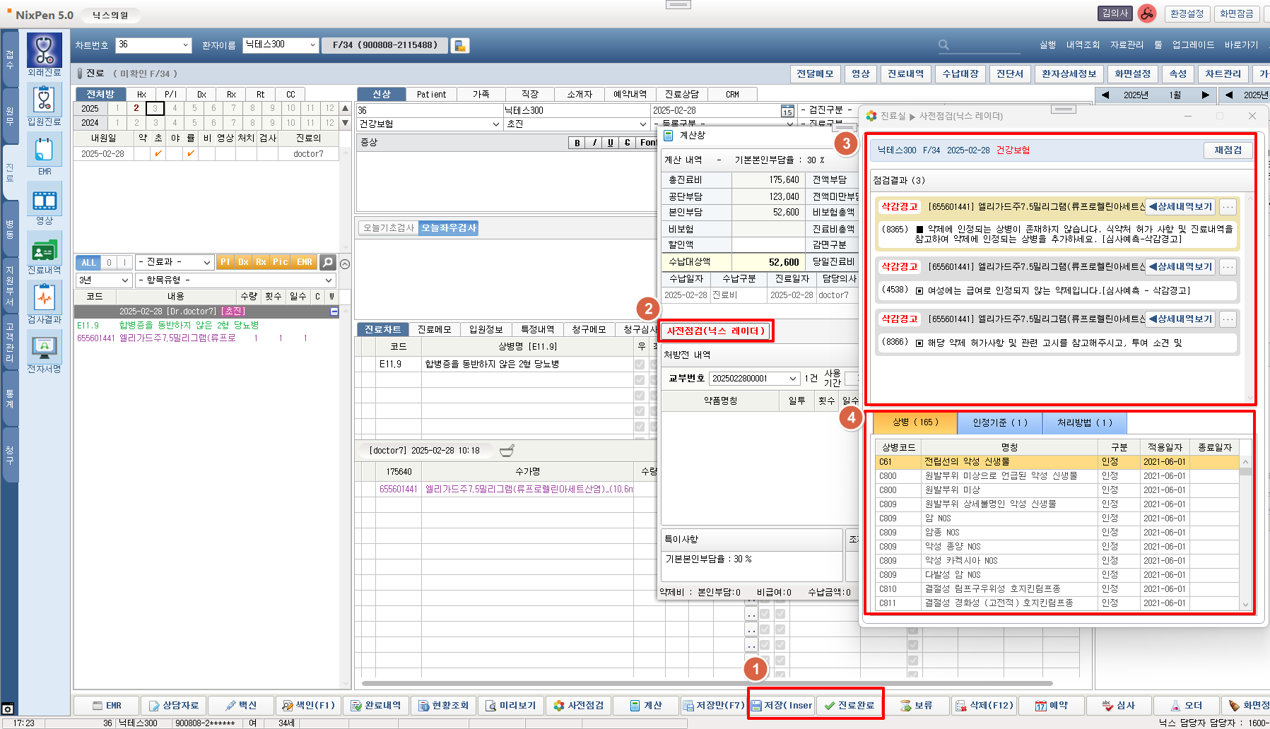 ① [외래진료] 에서 처방 후 저장, 진료완료 버튼 클릭