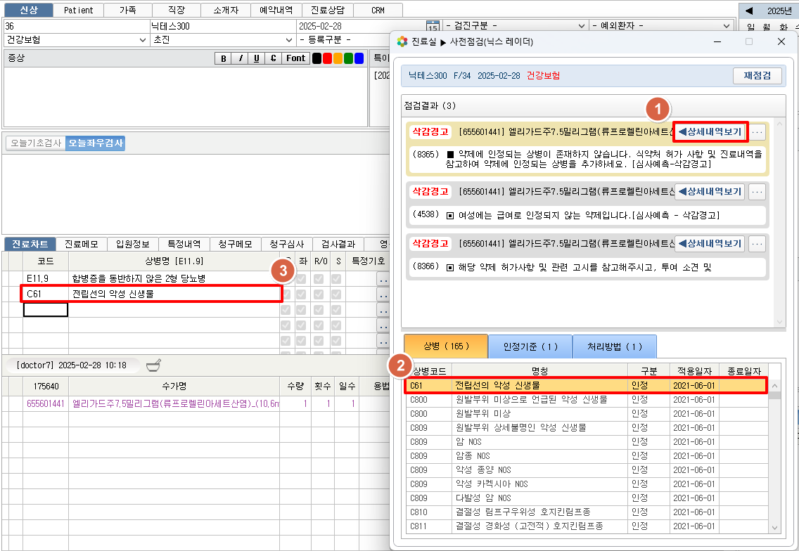 ② 상병탭에 입력 가능한 상병이 표시됩니다.