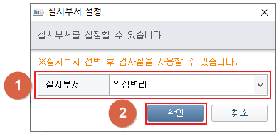 ② [확인] 버튼 클릭 시 검사실 실시부서가 변경됩니다.