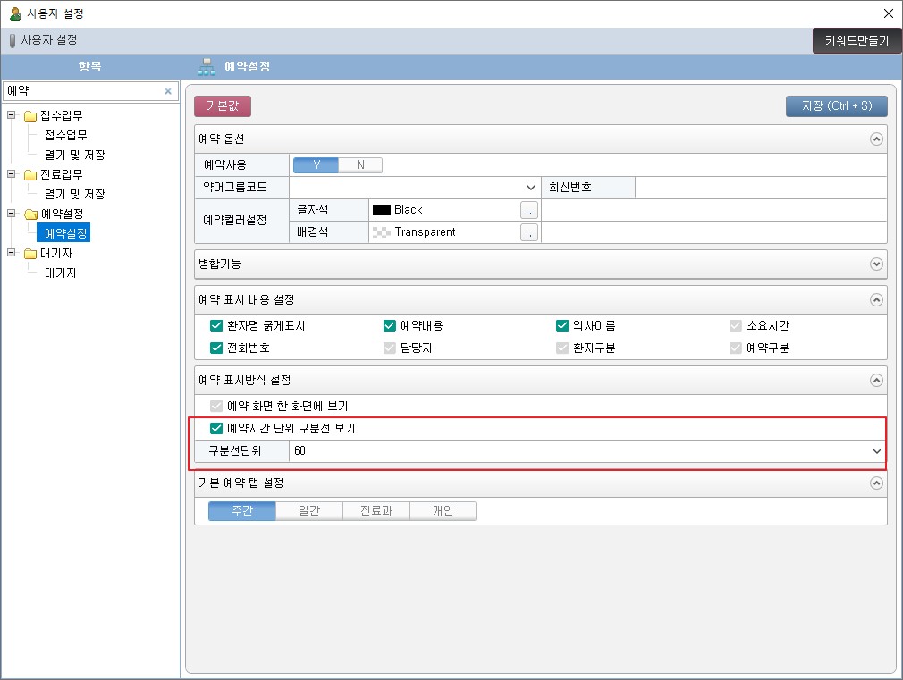 원무 - 예약시간 단위 구분선 보기 옵션 기능 추가