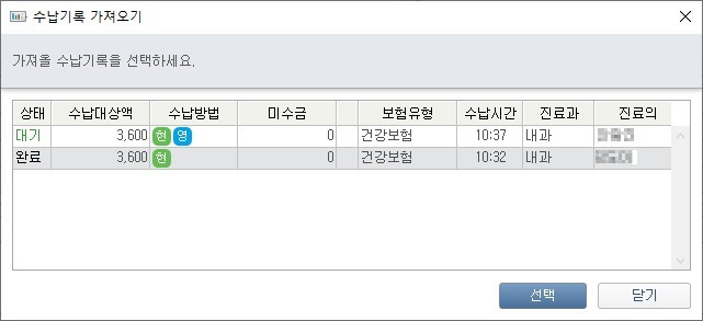5) 내역 중 수납 건 Double Click 하여 수납상세 정보 불러오기 기능 지원