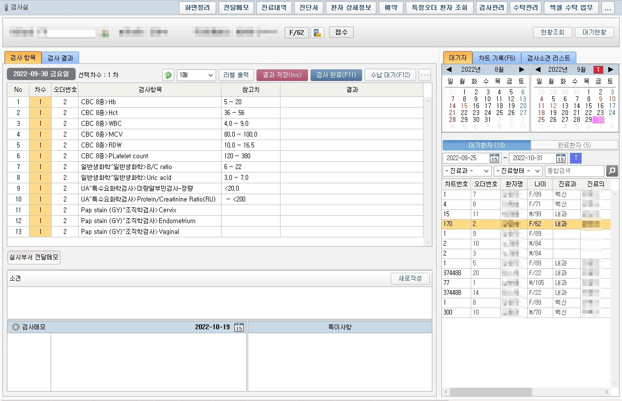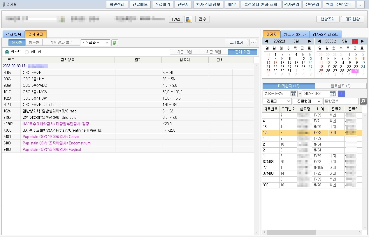 [ 검사결과에 그룹명 표시 설정 후 오더창 화면 ]