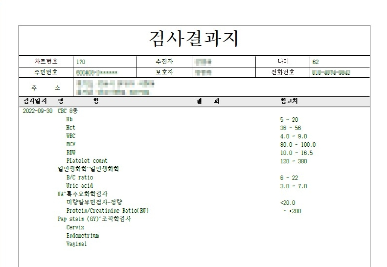 3) 검사결과 화면 내 항목 명칭 표시 변경