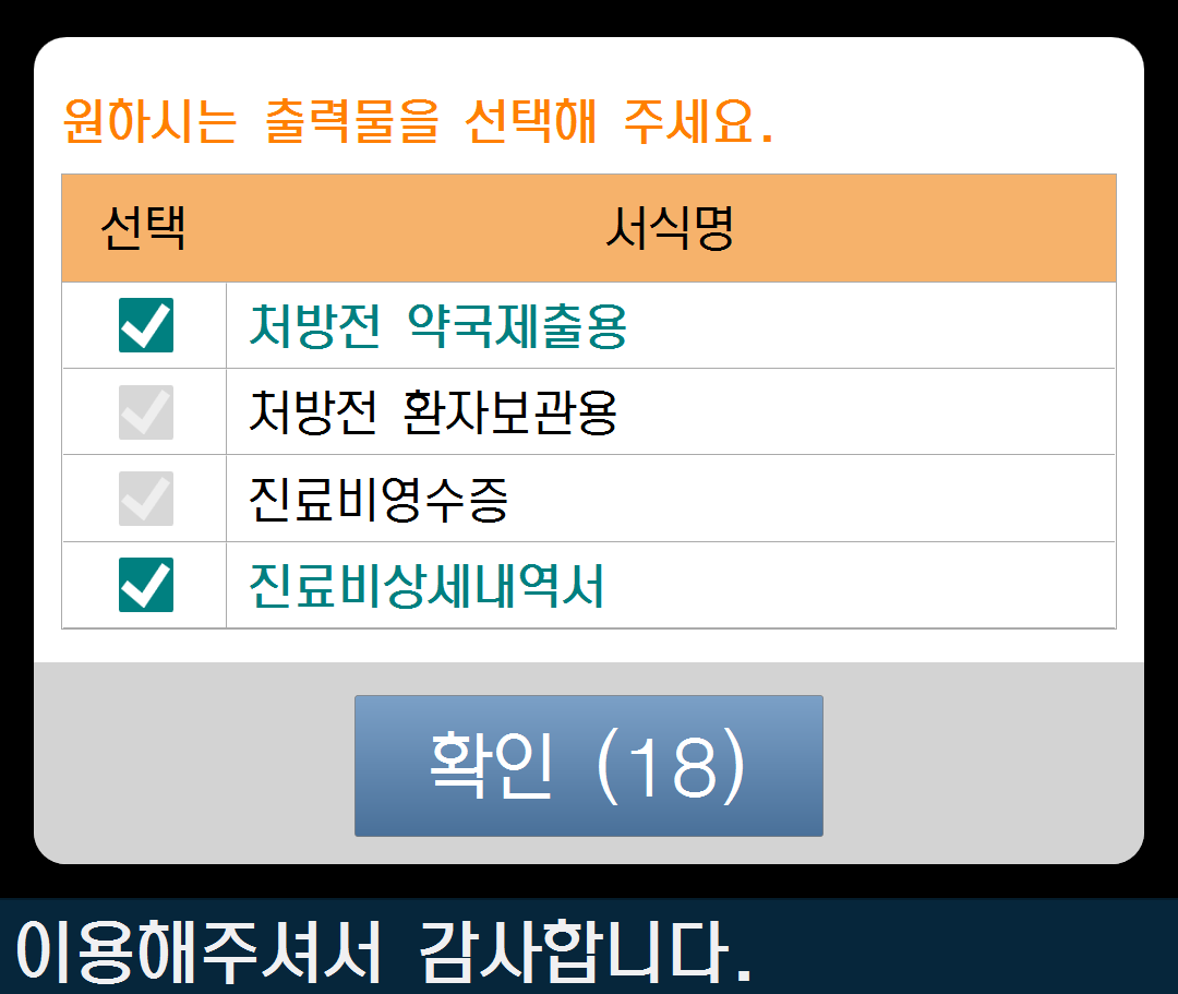 3) 진료비 수납 후 [진료비 세부산정내역서] 출력물 선택