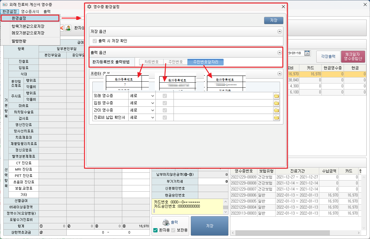 원무 - 외래 진료비 영수증 환자등록번호 출력방법 옵션 기능 추가