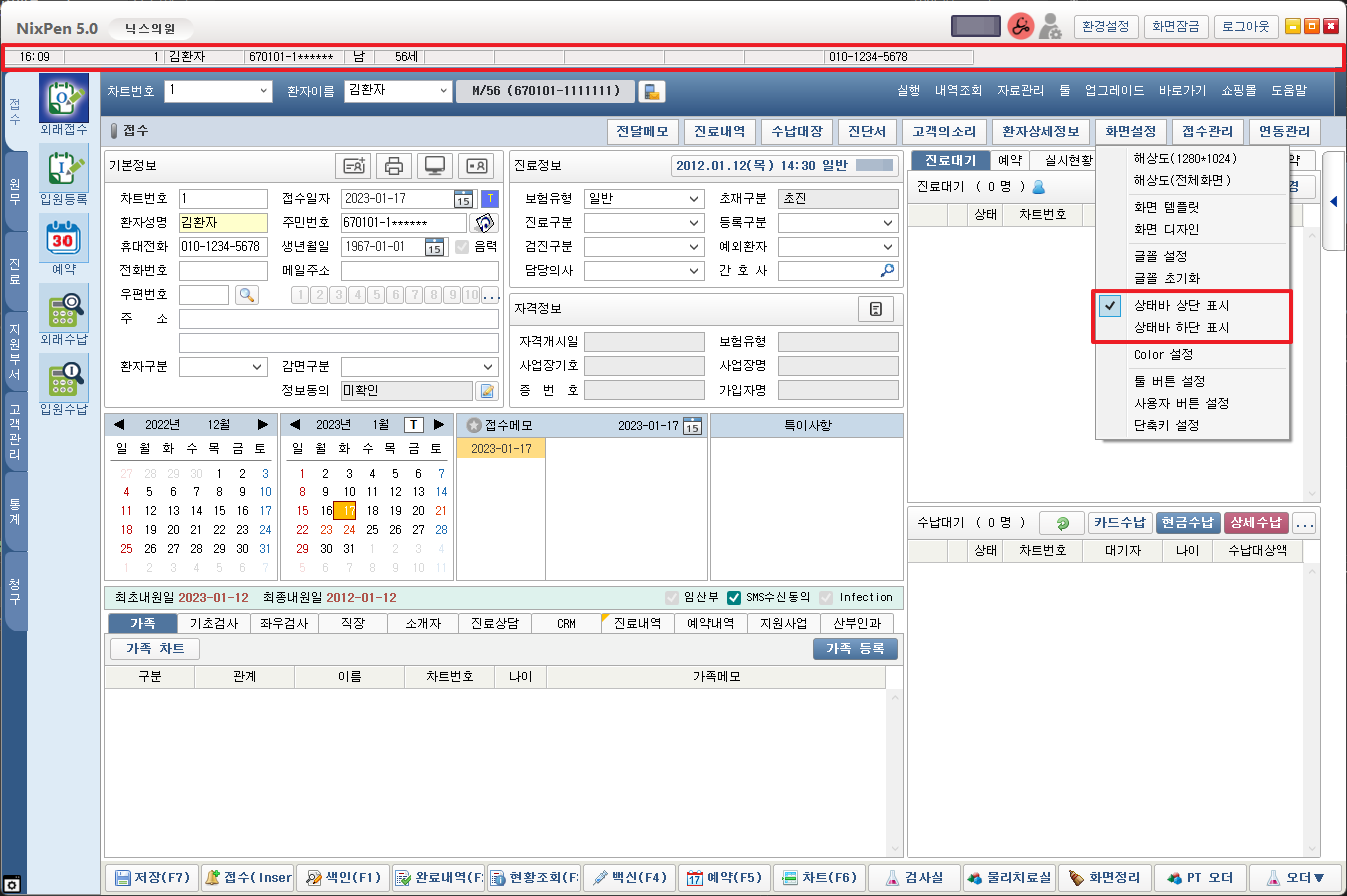 3) 환자 불러온 후 상태바에서 환자 정보 확인