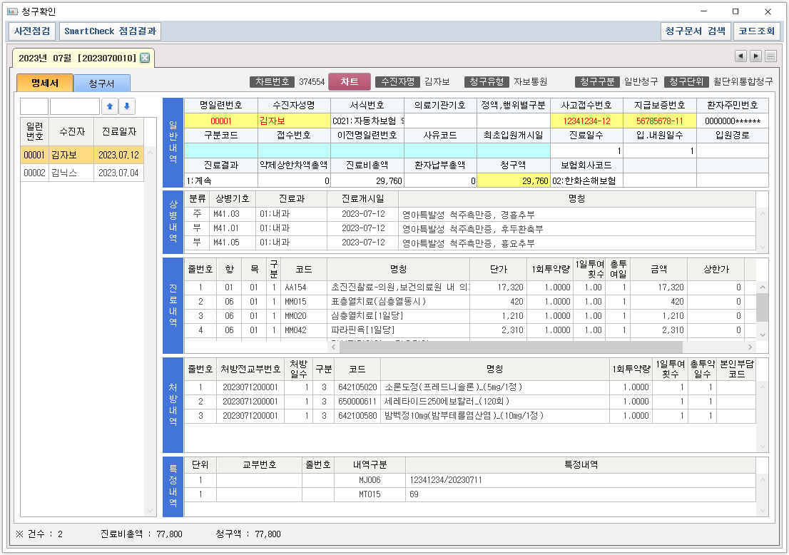 - 진료 - 검진 환자 보험 진료 기능 추가