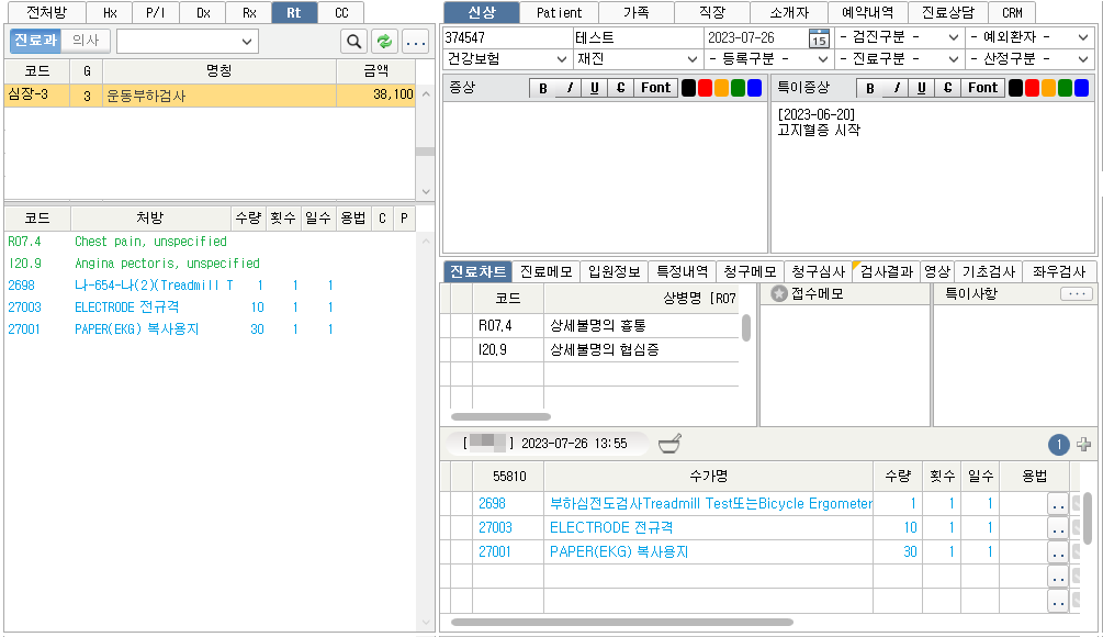 - 로그인 사용자로 진료 의사 가 변경되며, 당일 자격 조회 기준 보험 유형, 산정 기준 초재진 구분 이 적용됩니다.