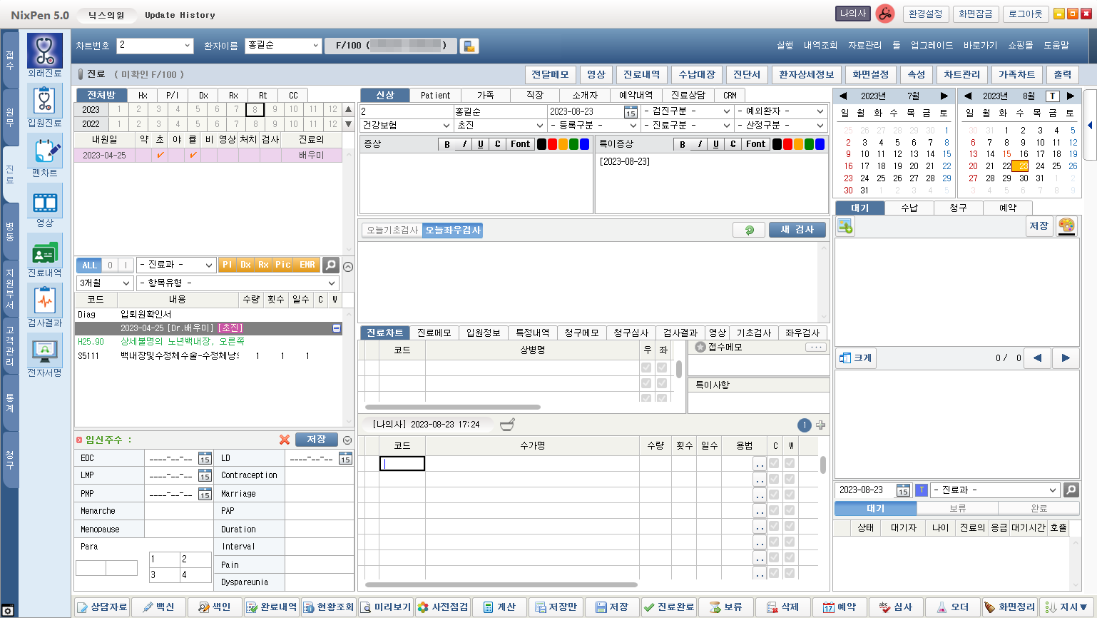 NixPen 5.0 Desk 접수 시 진료 대기자 목록에서 즉시 확인할 수 있습니다.