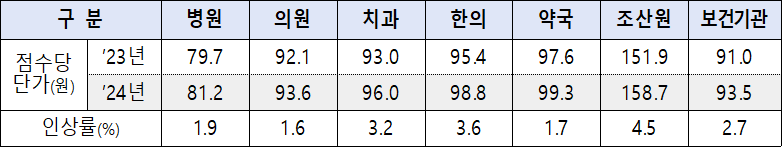 - 고시 - 2024년도 요양급여비용(환산지수) 적용
